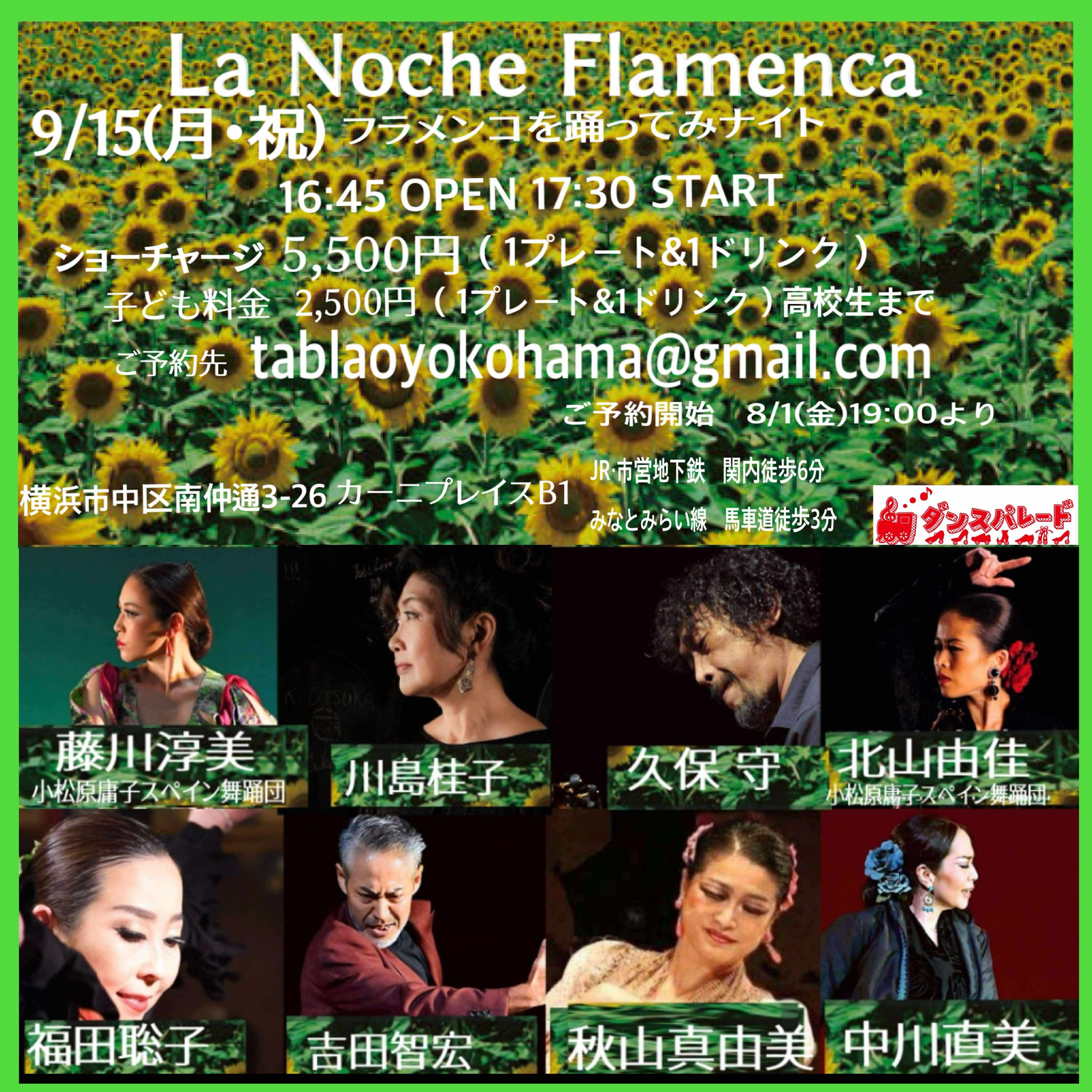 小松原庸子スペイン舞踊団の北山由佳と藤川淳美が下記日程で、「La Noche Flamenca」に出演します。